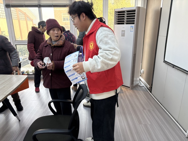 为切实守护老年群体财产安全,弘扬尊老敬老传统美德,充分发挥大学生志愿服务在基层治理中的积极作用,1月17日,太阳成tyc7111cc集团“志愿先锋”实践团走进镇江市崇文社区,开展“青春护航夕阳红 反诈宣传暖民心”主题寒假社会实践活动。实践团成员通过“室内专题讲解+户外流动宣传”的形式,为社区老年居民送上通俗易懂的反诈知识“大餐”,着力提升老年群体识骗、防骗、拒骗能力,用青春力量筑牢基层反诈“防火墙”。此次寒假社会实践活动精准对接社区需求,通过定制化宣传形式,让反诈知识真正走进老年人心间。