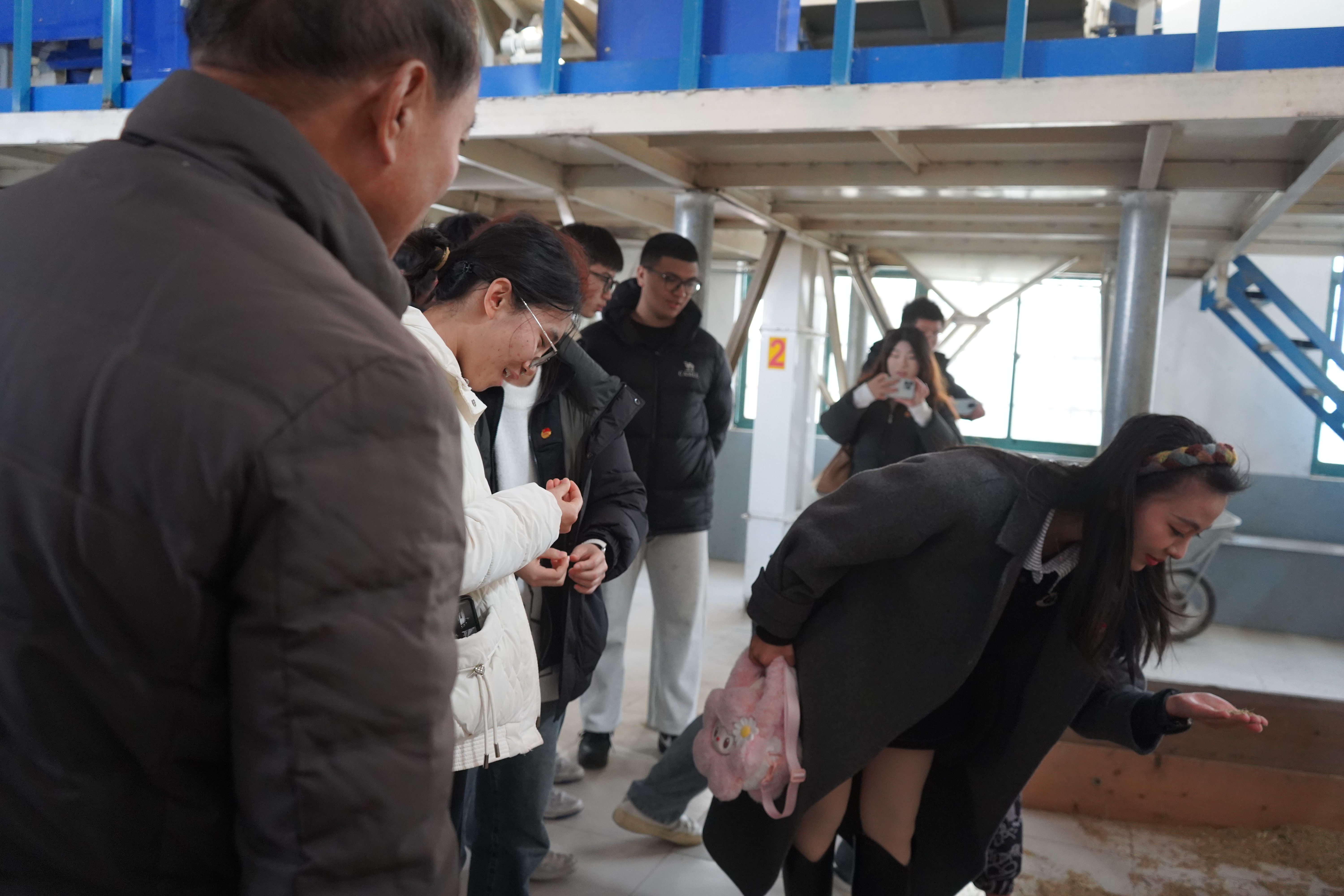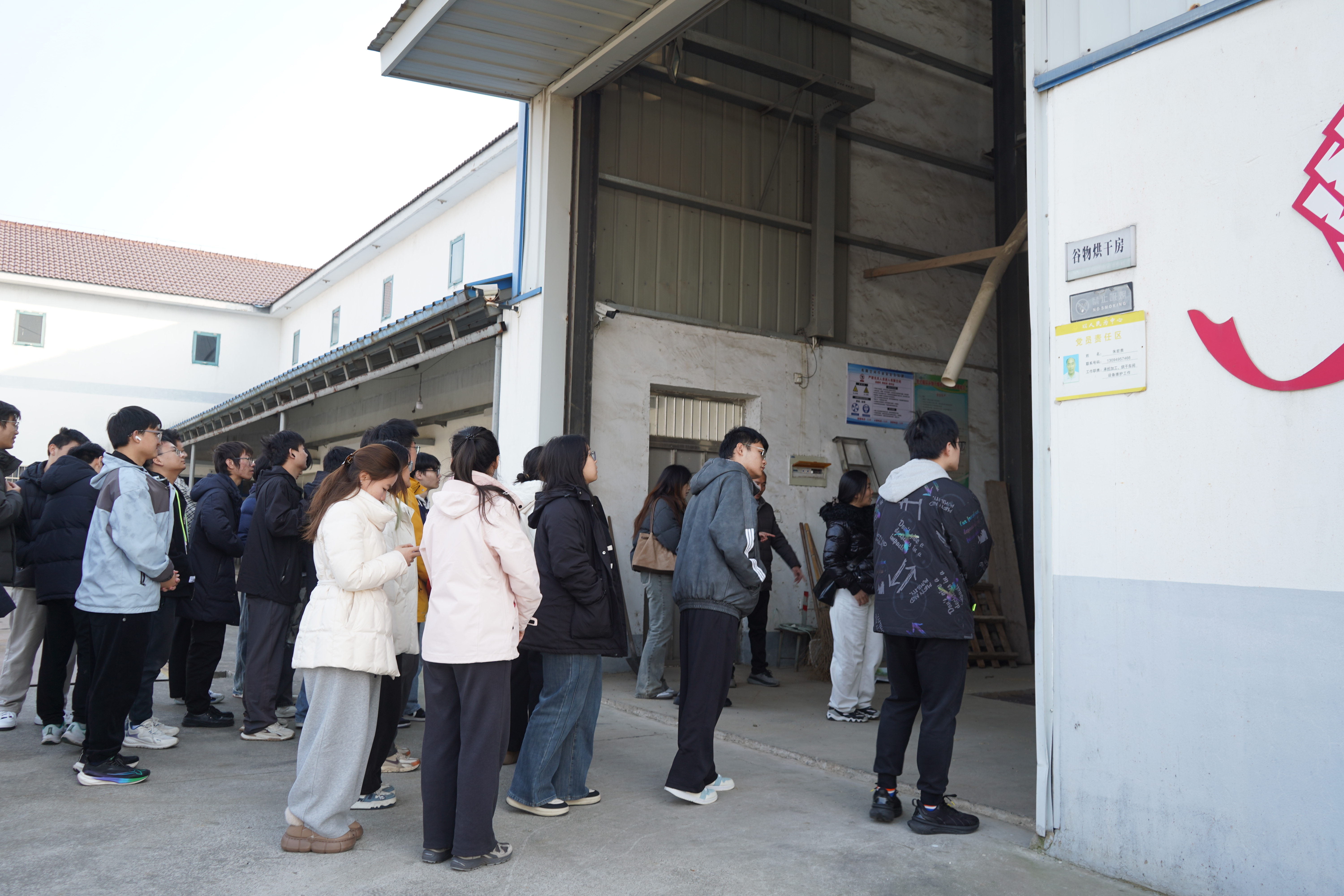 据介绍,此合作社主打南粳100品种,依托标准化加工流程,大米品质稳定,深受市场青睐,同时带动周边20余名村民就业,实现了产业发展与民生改善的双赢。同学们认真记录、积极提问,深入思考“新质生产力”如何赋能传统农业升级,为乡村产业注入新活力。