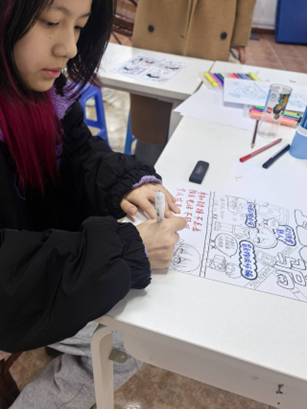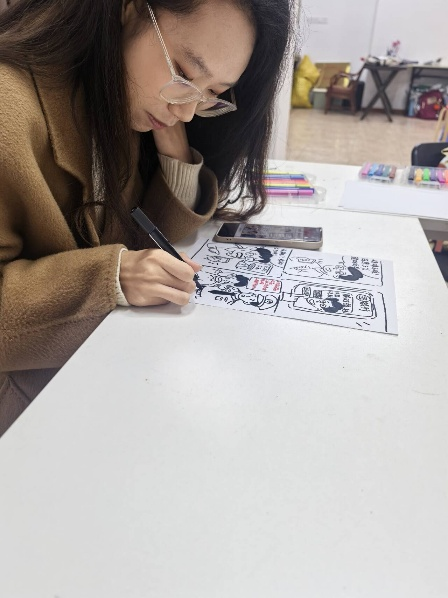 同学设计绘制反诈主题漫画海报 沈若祺 供图